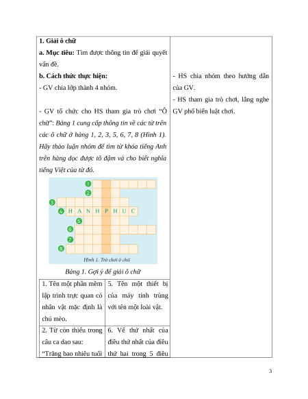 B. HOẠT ĐỘNG KHÁM PHÁ 2 1. Giải ô chữ