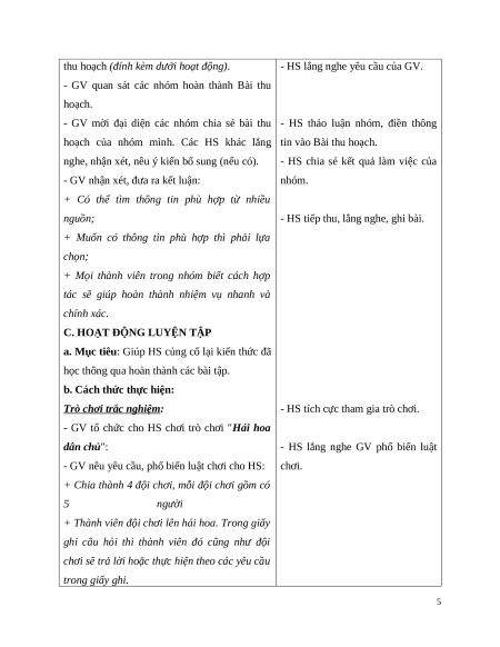Giáo án Chủ đề C1 Bài 2 Tin học lớp 5 Cánh diều: Thực hành tìm kiếm và chọn thông tin