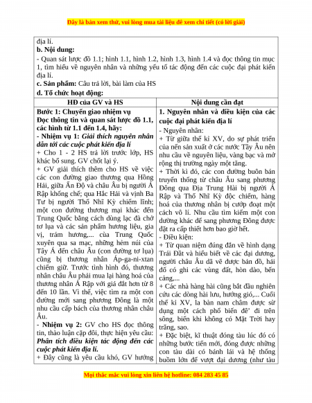 1, tìm hiểu về nguyên nhân và những yếu tố tác động đến các cuộc đại phát kiến địa lí.