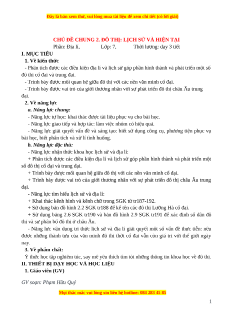 CHỦ ĐỀ CHUNG 2. ĐÔ THỊ: LỊCH SỬ VÀ HIỆN TẠI