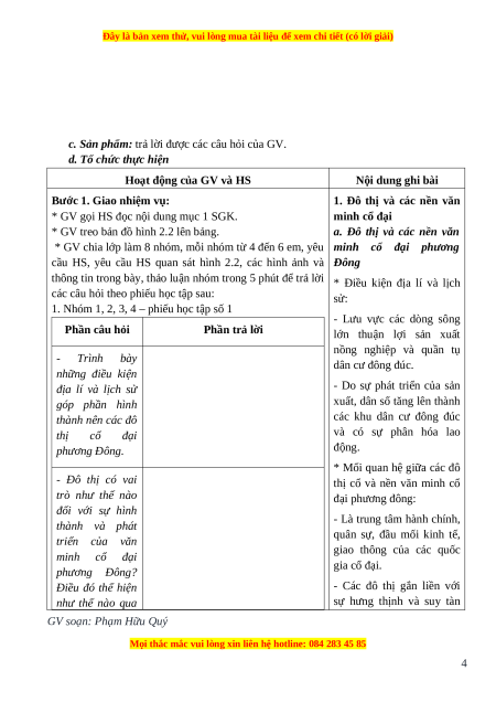 2.1. Tìm hiểu đô thị và các nền văn minh cổ đại (60 phút)