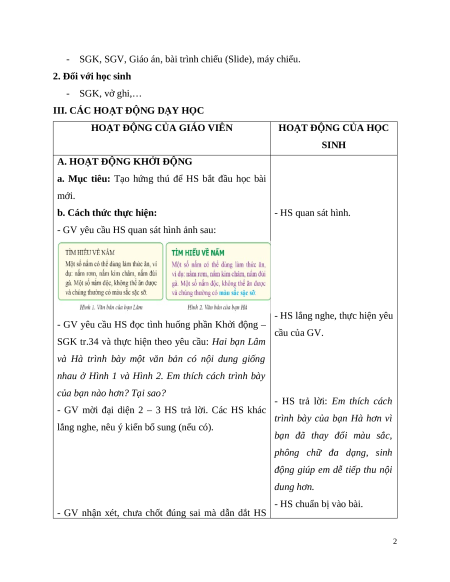 III. CÁC HOẠT ĐỘNG DẠY HỌC