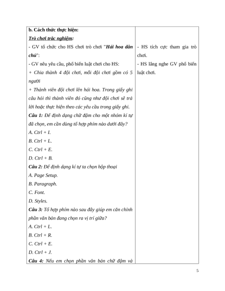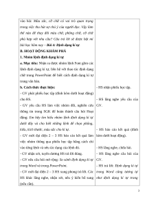 - GV mời đại diện 2 – 3 HS xung phong trả lời. Các trong Word cũng tương tự