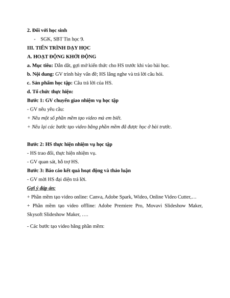 Giáo án Chủ đề E4 Bài 2: Thực hành làm quen với phần mềm Video Editor Tin học 9 Cánh diều