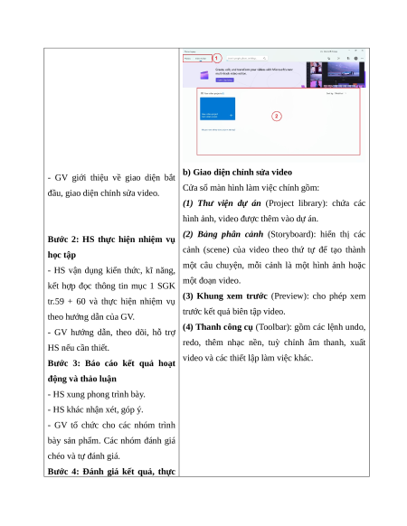 Bước 1: GV chuyển giao nhiệm Bài 1. Khám phá giao diện phần mềm Video vụ học tập Editor