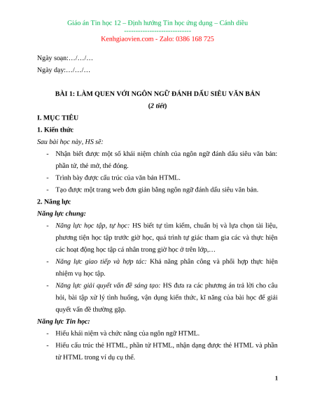 Kenhgiaovien.com - Zalo: 0386 168 725 Ngày soạn:…/…/… Ngày dạy:…/…/…