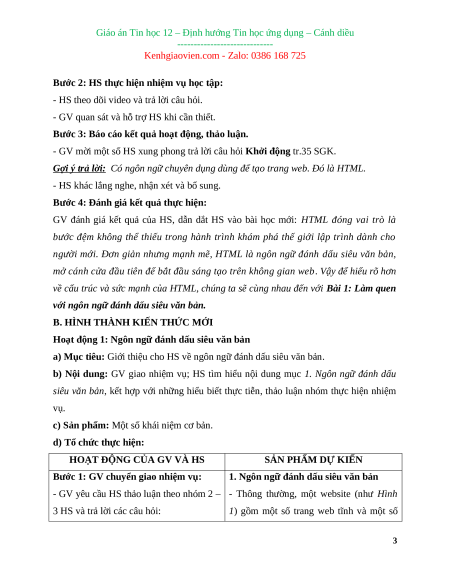 Giáo án Chủ đề F Bài 1 Tin học 12 Cánh diều: Làm quen với ngôn ngữ đánh dấu siêu văn bản