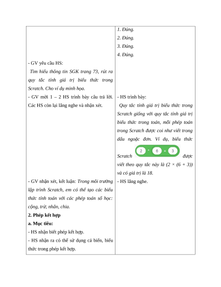 cộng, trừ, nhân, chia. 2. Phép kết hợp a. Mục tiêu: