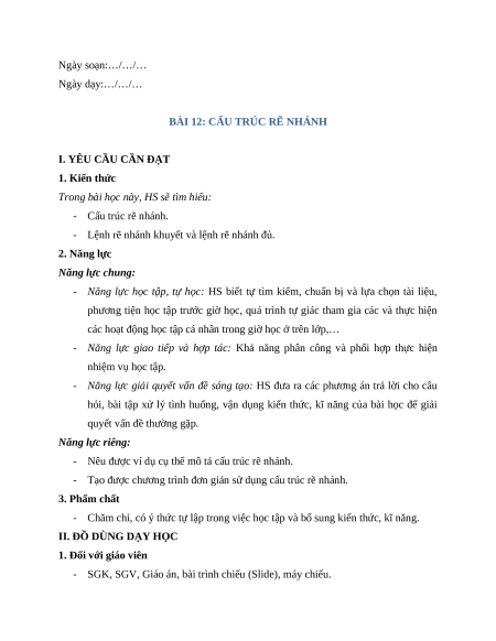 - Lệnh rẽ nhánh khuyết và lệnh rẽ nhánh đủ. 2. Năng lực