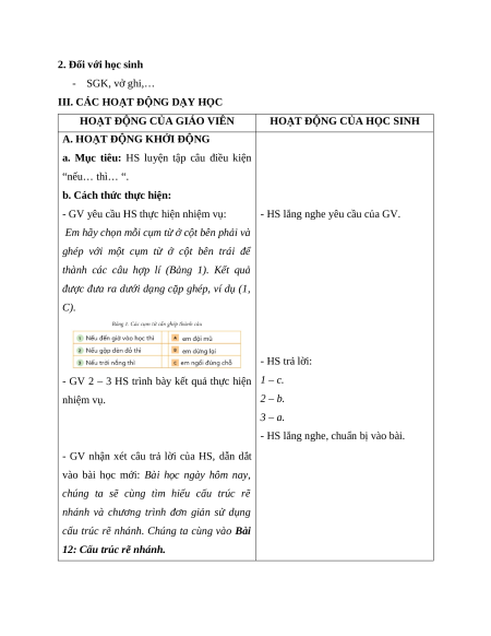 - Nêu được ví dụ cụ thể mô tả cấu trúc rẽ nhánh.