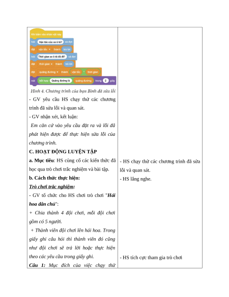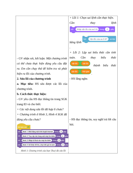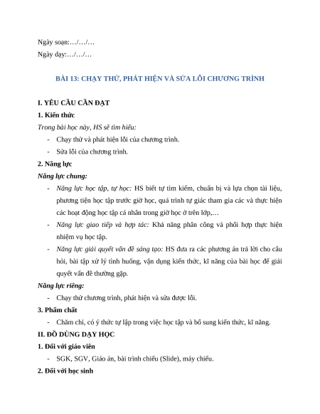 Giáo án Chủ đề F Bài 13 Tin học lớp 5 Cánh diều: Chạy thử, phát hiện và sửa lỗi chương trình