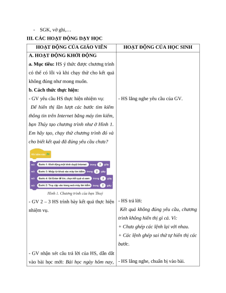 - Chạy thử chương trình, phát hiện và sửa được lỗi. 3. Phẩm chất