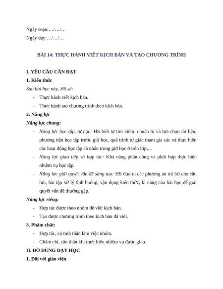 BÀI 14: THỰC HÀNH VIẾT KỊCH BẢN VÀ TẠO CHƯƠNG TRÌNH