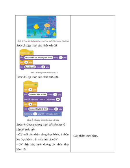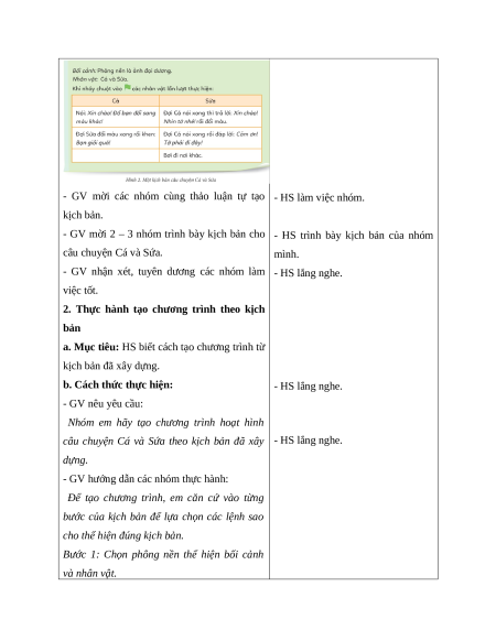 Giáo án Chủ đề F Bài 14 Tin học lớp 5 Cánh diều: Thực hành viết kịch bản và tạo chương trình