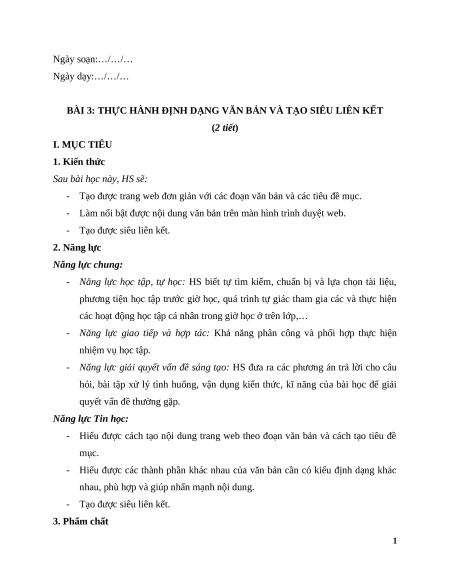 - Tạo được siêu liên kết. 3. Phẩm chất 1