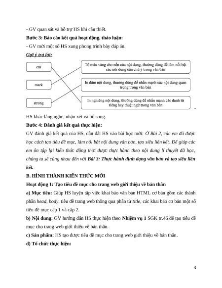 - Hiểu được cách tạo nội dung trang web theo đoạn văn bản và cách tạo tiêu đề mục.