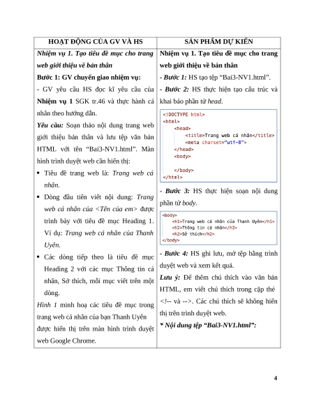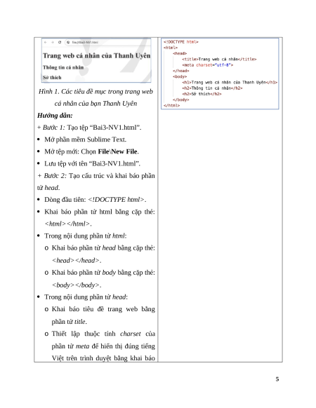 Nhiệm vụ 1 SGK tr.46 và thực hành cá khai báo phần tử head. nhân theo hướng dẫn.