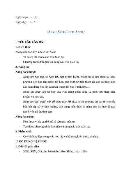 Giáo án Chủ đề F Bài 5 Tin học lớp 5 Cánh diều: Cấu trúc tuần tự
