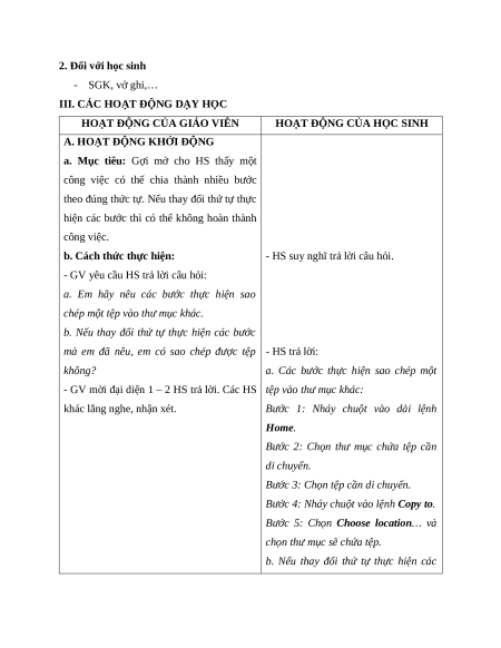 III. CÁC HOẠT ĐỘNG DẠY HỌC