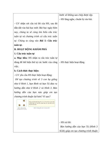 a. Mục tiêu: HS nhận ra cấu trúc tuần tự
