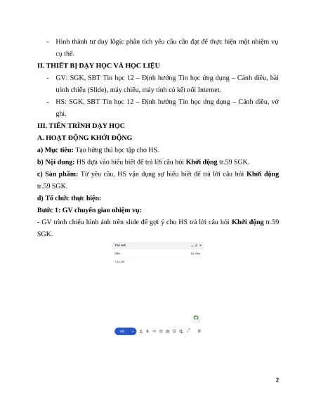 - HS: SGK, SBT Tin học 12 – Định hướng Tin học ứng dụng – Cánh diều, vở ghi.