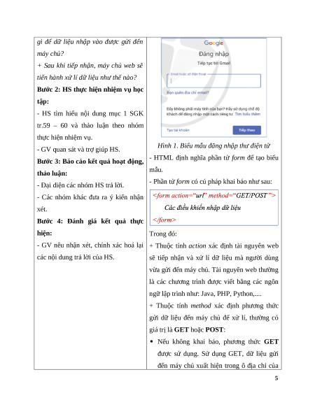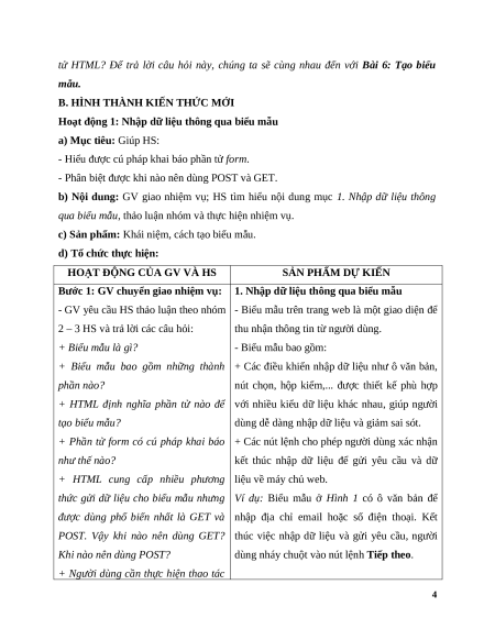 qua biểu mẫu, thảo luận nhóm và thực hiện nhiệm vụ.