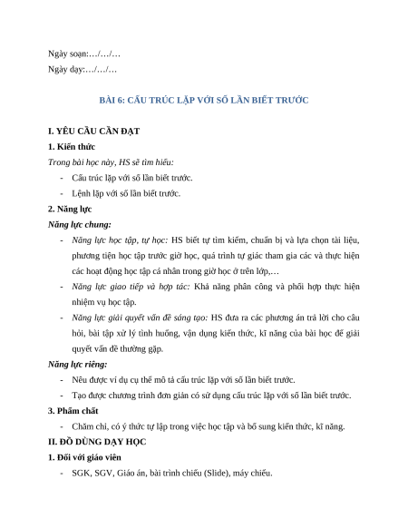 BÀI 6: CẤU TRÚC LẶP VỚI SỐ LẦN BIẾT TRƯỚC