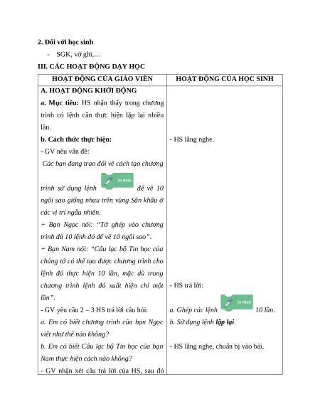 III. CÁC HOẠT ĐỘNG DẠY HỌC