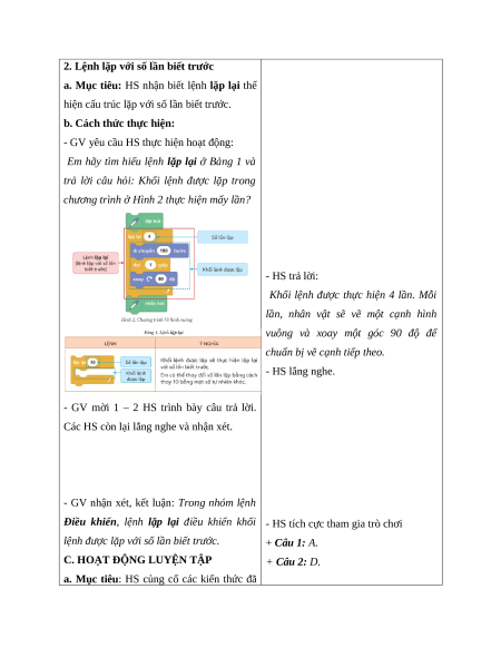- Lệnh lặp với số lần biết trước. 2. Năng lực