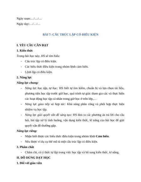 - Nêu được ví dụ cụ thể mô tả một cấu trúc lặp có điều kiện. 3. Phẩm chất