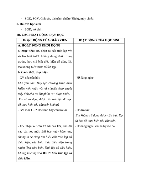 Giáo án Chủ đề F Bài 7 Tin học lớp 5 Cánh diều: Cấu trúc lặp có điều kiện
