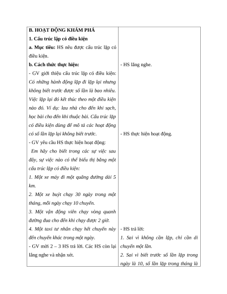 a. Mục tiêu: HS nêu được cấu trúc lặp có điều kiện.