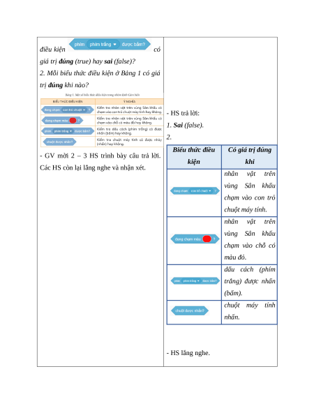 a. Mục tiêu: HS nêu được các biểu thức - HS thực hiện hoạt động. điều kiện.
