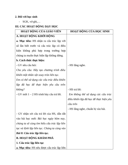 BÀI 8: CẤU TRÚC LẶP LIÊN TỤC