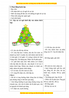 3.1. Xếp các từ ngữ dưới đây vào nhóm thích hợp