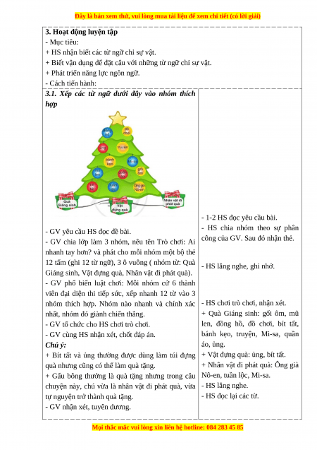 - HS nhận biết các từ ngữ chỉ sự vật; biết đặt câu với các từ ngữ đó.