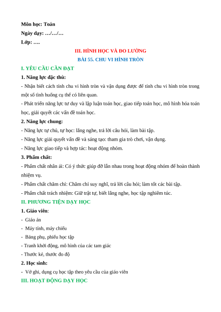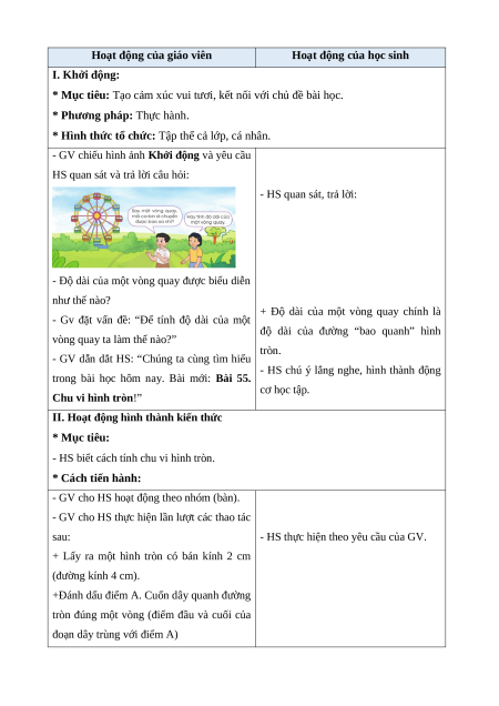 trong bài học hôm nay. Bài mới: Bài 55. cơ học tập. Chu vi hình tròn!”