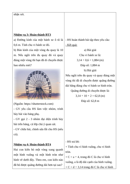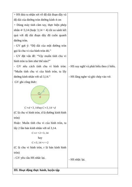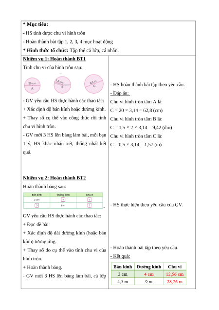 Giáo án Chu vi hình tròn Toán lớp 5 Cánh diều