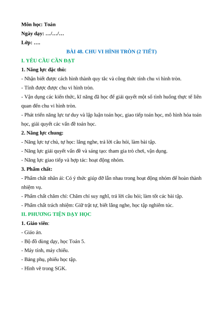 BÀI 48. CHU VI HÌNH TRÒN (2 TIẾT)