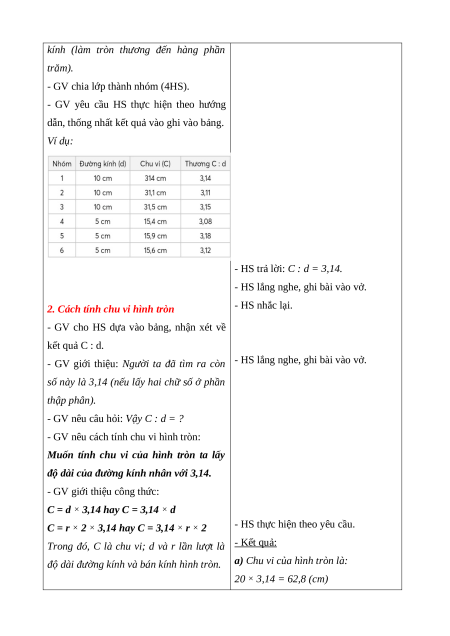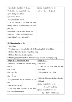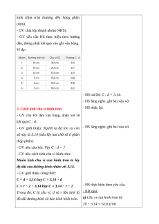 - HS nhận biết được cách hình thành quy tắc và công thức tính chu vi hình tròn. * Cách tiến hành: