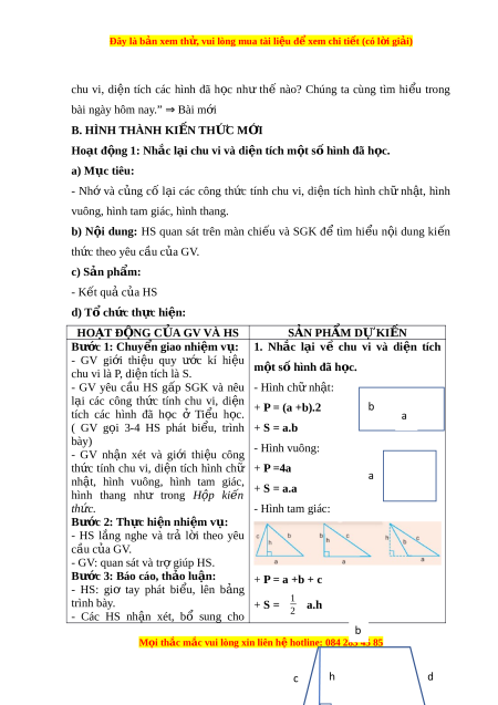 Đây là bản xem th , vu ử i lòng mua tài li u ệ đ xe ể m chi ti t ế (có l i ờ gi i ả ) chu vi, di n ệ tích các hình đã h c