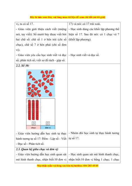 số; phân tích số; viết sơ đồ tách - gộp số. 2.2. Số 30: