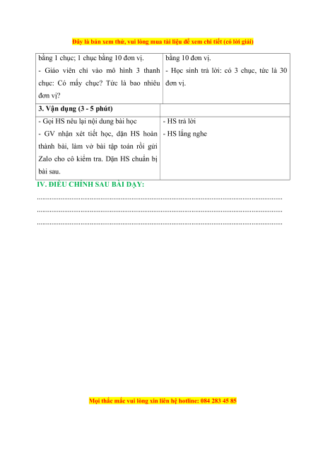 chục: Có mấy chục? Tức là bao nhiêu đơn vị. đơn vị? 3. Vận dụng (3 - 5 phút)