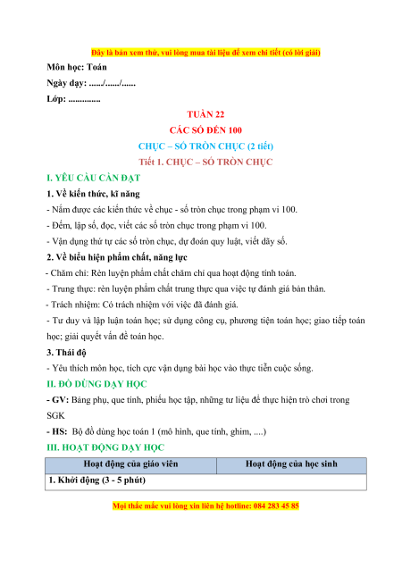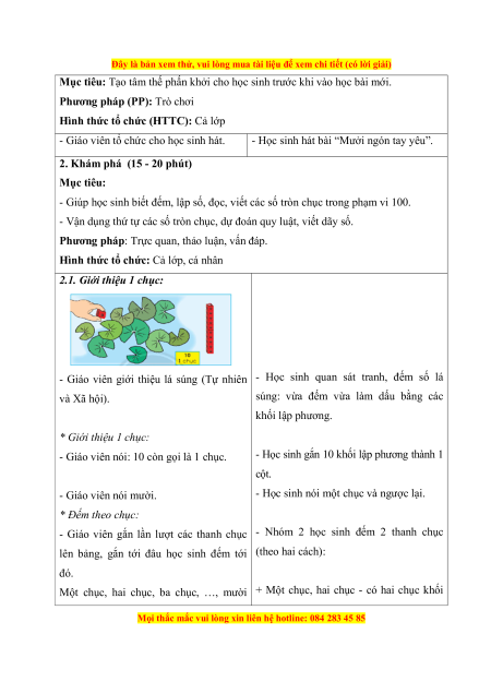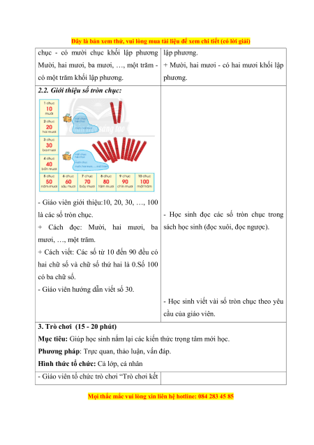- Giúp học sinh biết đếm, lập số, đọc, viết các số tròn chục trong phạm vi 100.