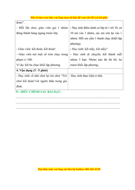 - Mỗi lần chơi, giáo viên gọi 1 nhóm - Học sinh điểm danh cả lớp từ 1 tới 10, cứ
