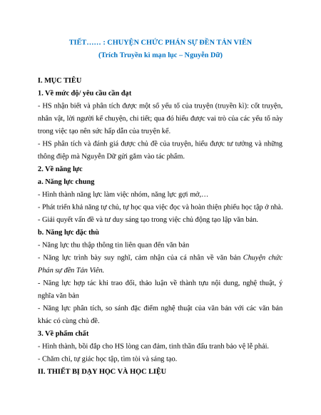 Giáo án Chuyện chức phán sự đền Tản Viên Ngữ Văn 12 Cánh diều