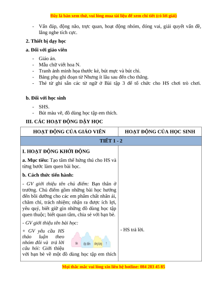 HOẠT ĐỘNG CỦA HỌC SINH TIẾT 1 - 2