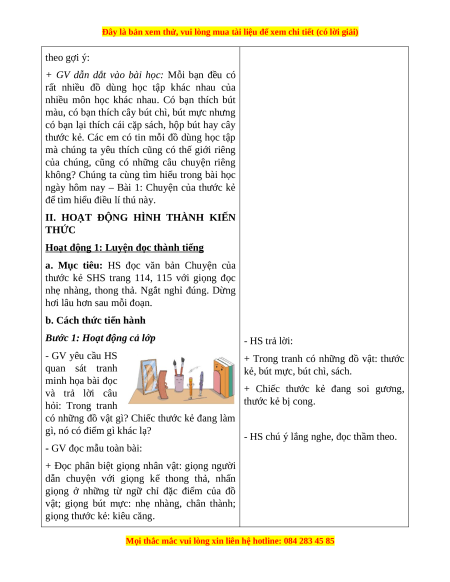 thước kẻ SHS trang 114, 115 với giọng đọc