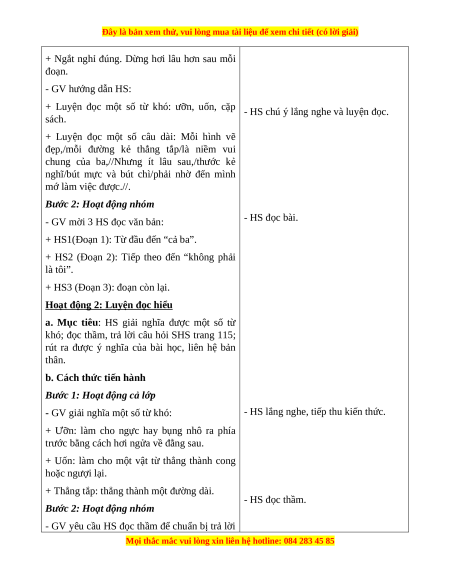 khó; đọc thầm, trả lời câu hỏi SHS trang 115;