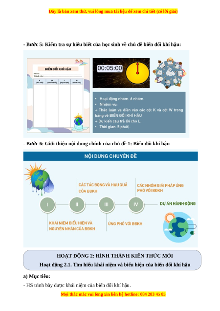 - Bước 6: Giới thiệu nội dung chính của chủ đề 1: Biến đổi khí hậu